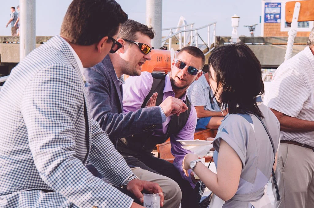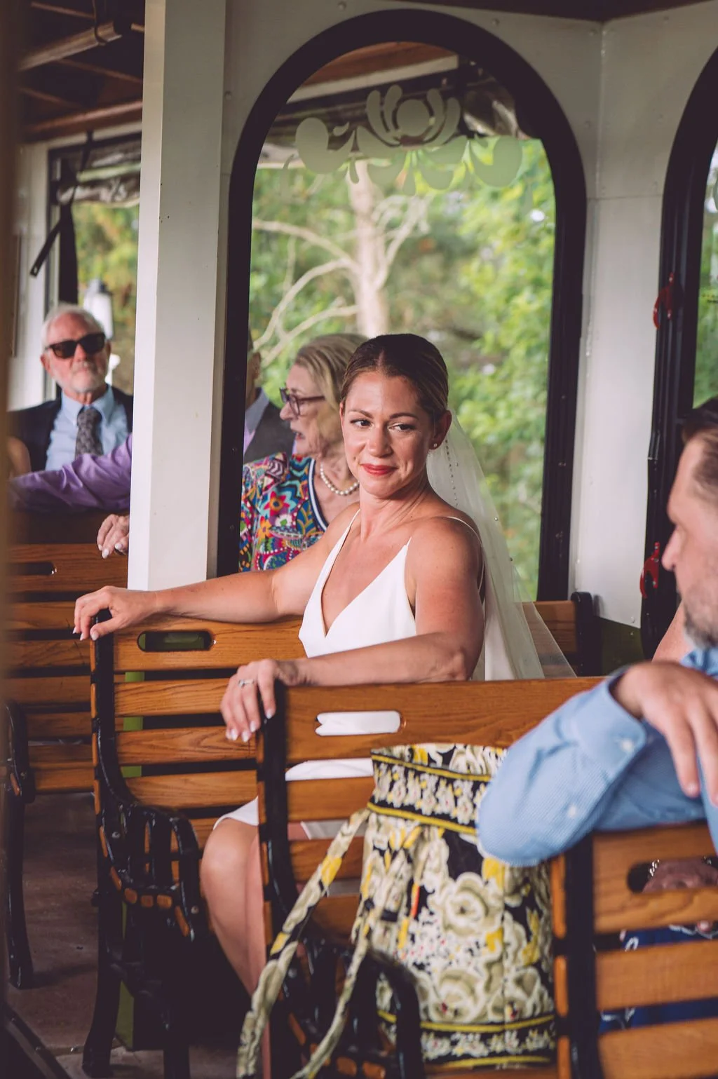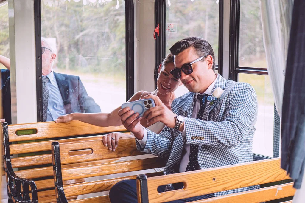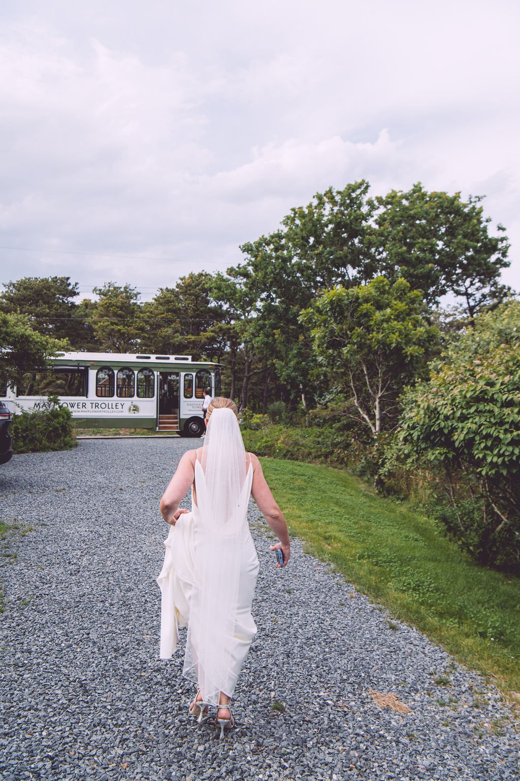 Ultimately, the questionable weather reports and shifting forecasts meant the Schooner Bay Lady II did not set sail, however, we were still able to hold the wedding on the deck, we just stayed docked in the marina for safety. We did have a newborn with us after all. From the AirBNB, we had a fun a ride from the Mayflower Trolley to the marina in Provincetown.