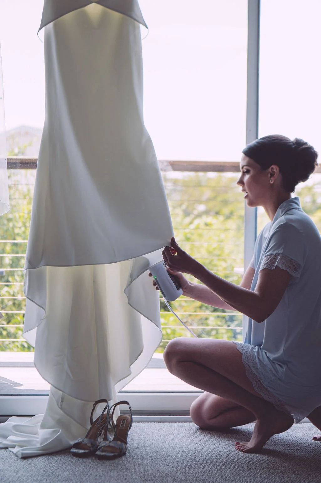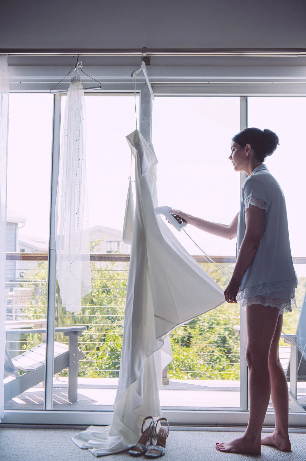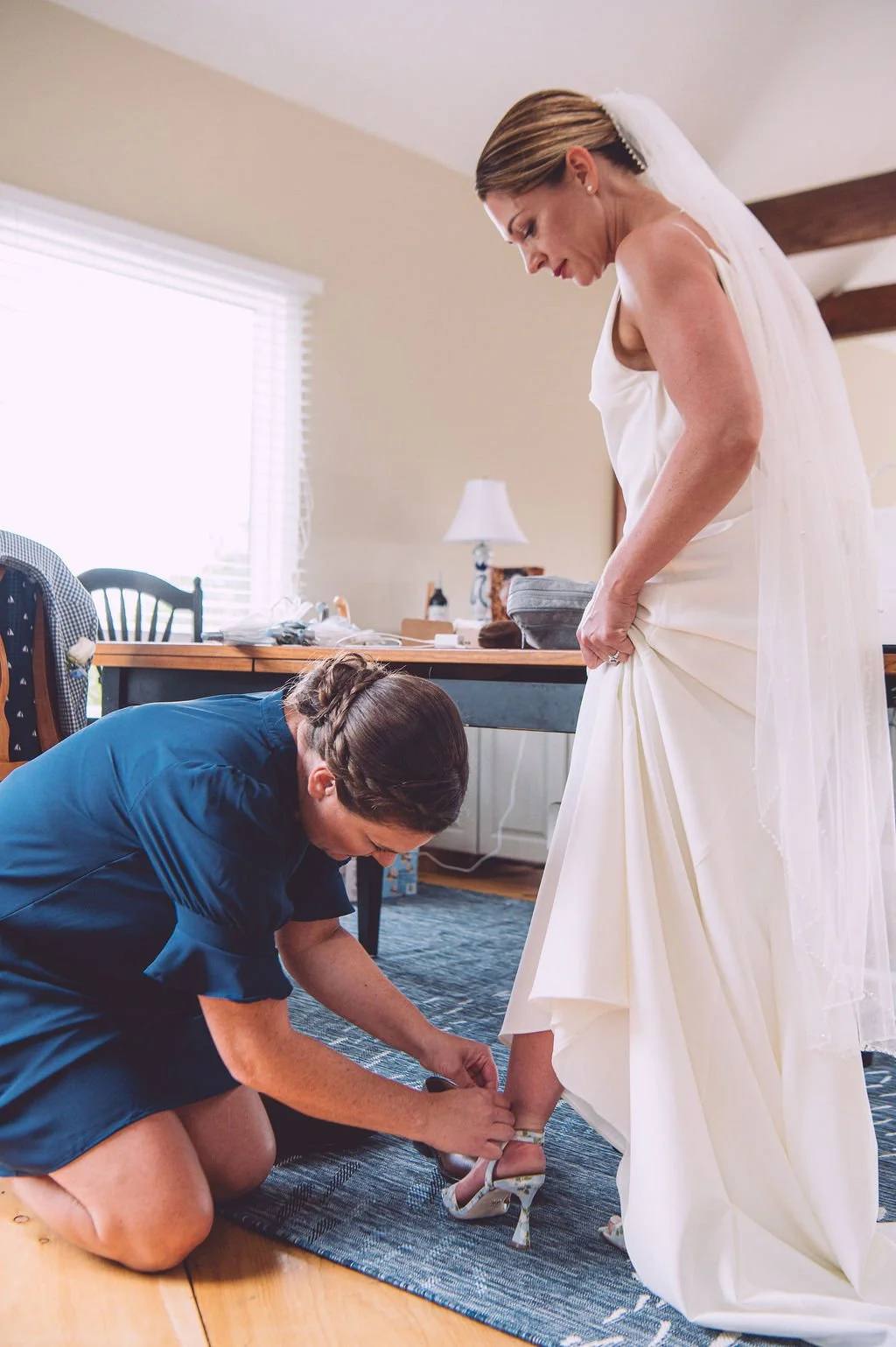 My day officially began at their gorgeous AirBNB in nearby Truro. From the moment I arrived the vibes were relaxed, joyful, and full of fun. Even the conflicting reports about the weather forecast and the status of their sunset sail on the Schooner Bay Lady II kept changing, but Amanda remained positive that no matter what, that was going to be the best day of her life. She spent the morning and afternoon singing and dancing as she got ready — signs of a bride who knew their love was the only thing that mattered. When it seemed like the rain would be too much for the schooner, she even said she would be willing to have her ceremony in the rain on the beach, if that’s what it took. A part of me was excited at the thought, but I’m always ready to pivot no matter what your adventure elopement brings our way.